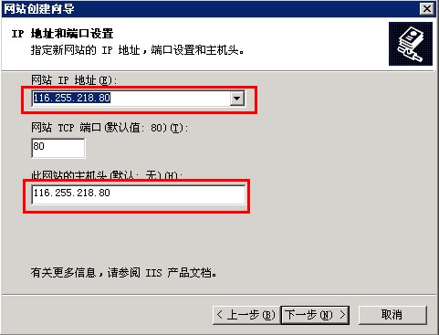 在IIS端创建一个新的网站,在进行填写网站IP地址的时候,填写您VPS或服务器外网IP,也就是IDC公司分给您的IP,网站的主机头也填写您VPS或服务器外网IP,具体如下图: