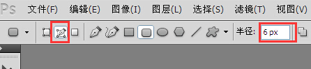2、选择工具栏左侧的“圆角矩形工具”(右键点击选择),在左上角选择路径(中间那个),半径根据自己图片大小选择,本次操作选择6px,如下图;